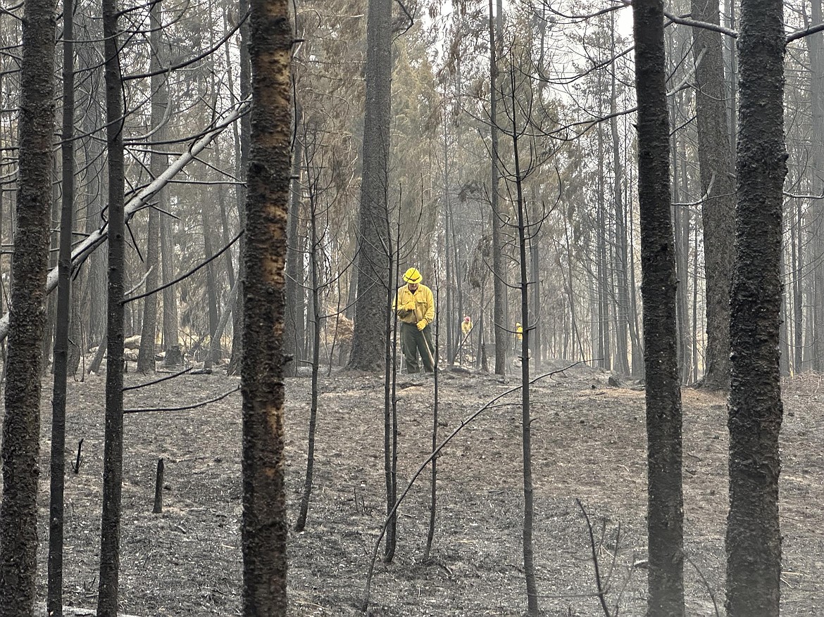 Firefighters continue to mop up and patrol, checking for heat that may threaten the line.
