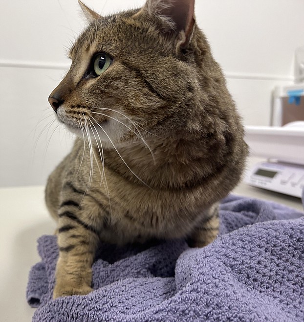 A declawed adult cat weighed a little over 4 pounds when it was found in a yard.