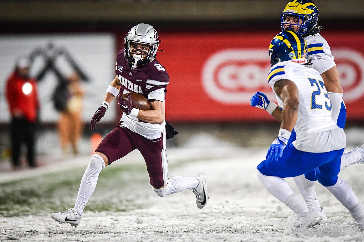 Grizzlies wide receiver Keelan White (6) pulls in a reception in the second quarter against Delaware at Washington-Grizzly Stadium on Saturday, Dec. 2. (Casey Kreider/Daily Inter Lake)