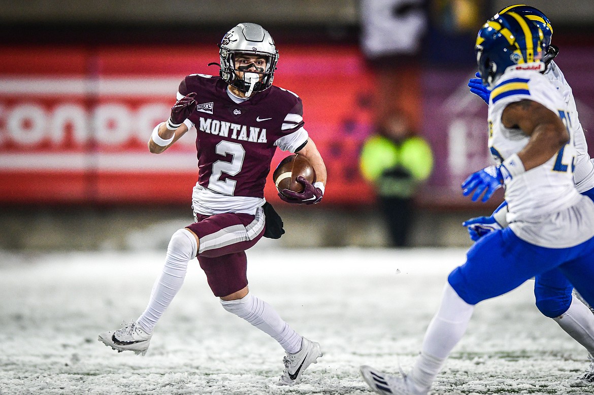 Grizzlies punt returner Drew Deck (2) returns a punt in the third quarter against Delaware at Washington-Grizzly Stadium on Saturday, Dec. 2. (Casey Kreider/Daily Inter Lake)