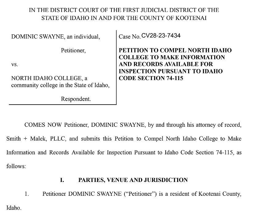 The petition, filed Nov. 17 in 1st District Court in Kootenai County, alleges NIC violated Idaho public records laws by denying Swayne’s request for a copy of the report, which he says involves allegations against him by another NIC employee.