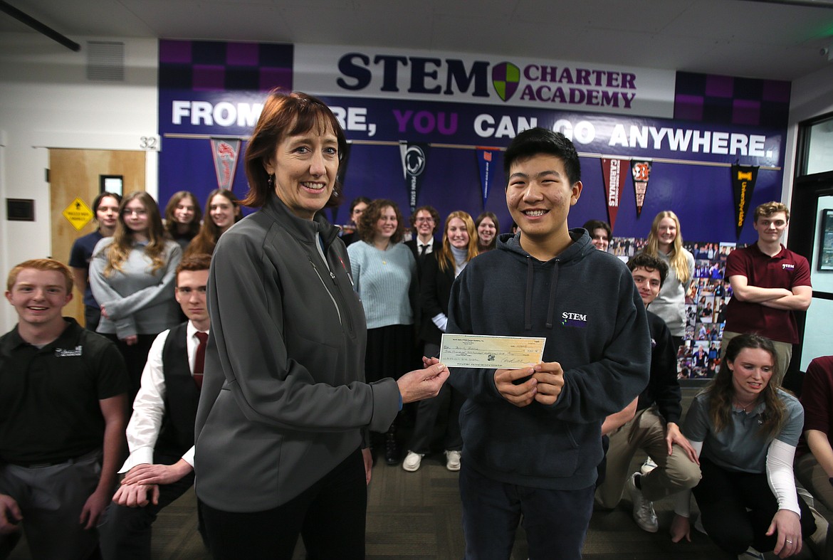 “We’re humbled and excited about the year to come because you’re starting us off great," Family Promise Executive Director Cindy Wood said to junior Ryan Liu, president of the North Idaho STEM National Honor Society, during a presentation at the school Thursday.