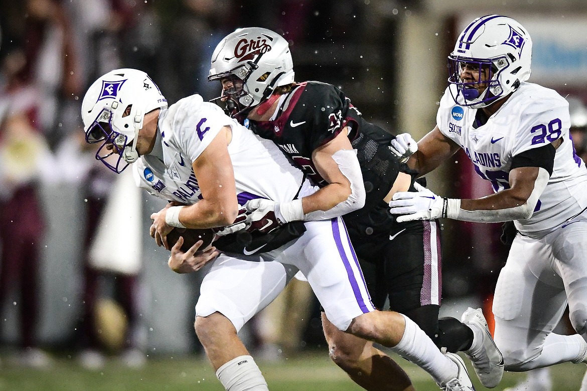 QUICK KICKS: Montana was penalized seven times for 90 yards and Furman had three flags, all false starts. One negated a failed two-point PAT attempt after Pline’s TD, and the Paladins then kicked the point-after. … Linebacker Braxton Hill had a team-high 10 tackles. … Eureka’s Garrett Graves had five stops. … Glacier High product Henry Nuce, who had to have a pectoral muscle repaired in August, had a sack among his three tackles. … Three Griz have three career punt return TDs: Jerry Louie-McGee (2016-19), Marc Mariani (2006-09) and Levander Segars (2001-04). … UM will play the winner of Saturday’s North Dakota State-South Dakota quarterfinal. … The Grizzlies’ last home semifinal was a snowy, 24-17 win over Appalachian State in 2009.