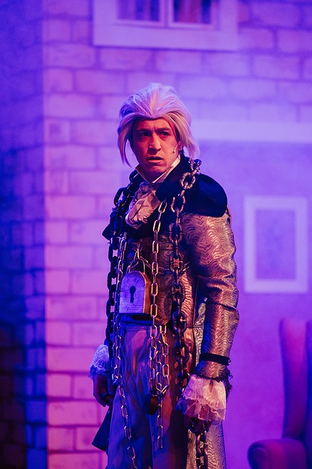 Mikey Winn, Whitefish Theatre Company's operations and marketing director, performs in a dress rehearsal for the company's 2023 production of "A Christmas Carol," where he plays the ghost of Jacob Marley. The holiday show is Winn's 24th local production. (Photo courtesy of Matt Wetzler/Thewmatt Photography)ARTICLES BY KATE HESTON