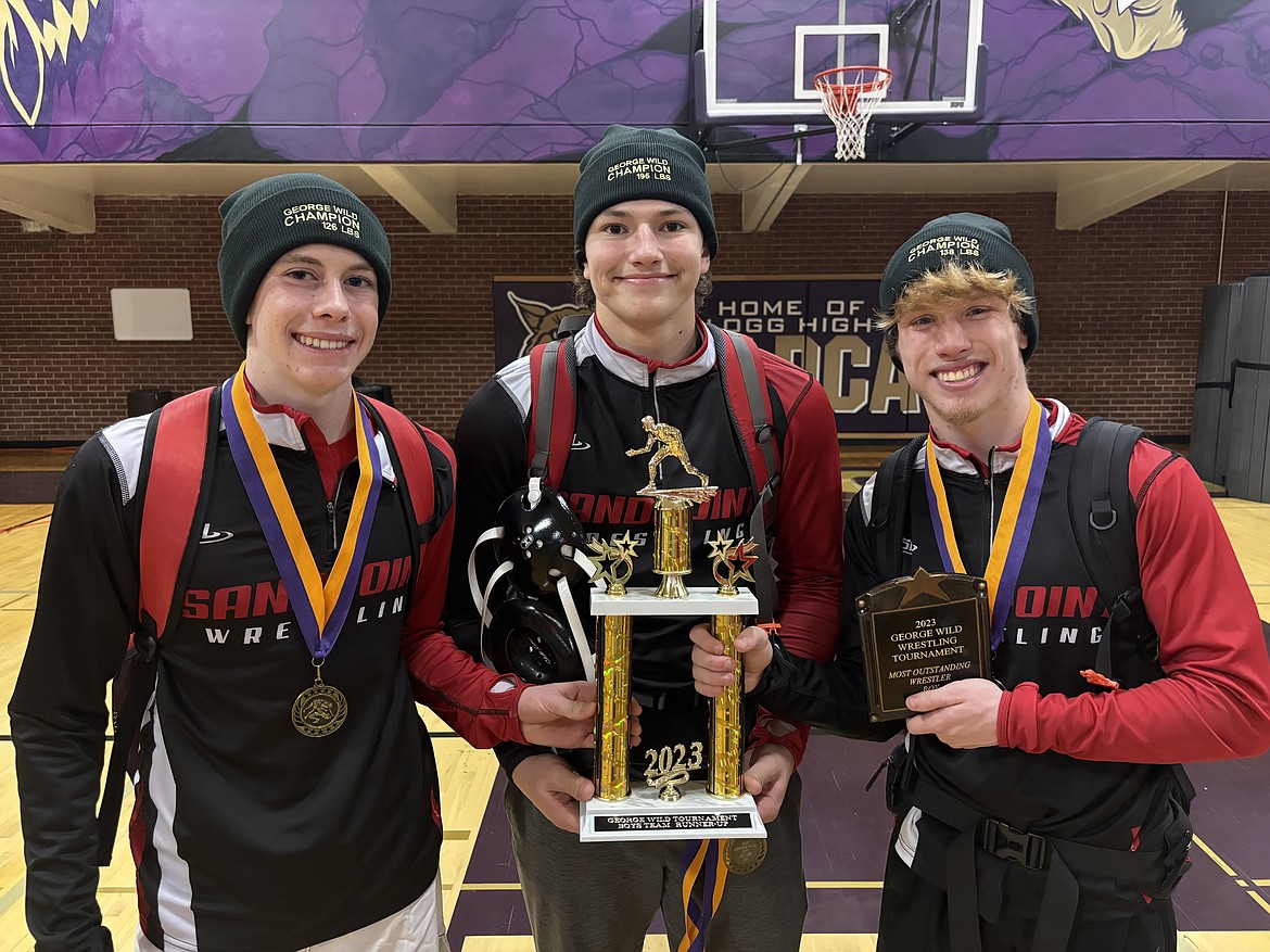 KELLOGG – Sandpoint’s Andrew Duke (126), Shane Sherrill (138), and Jorden Tyler (195) all took home gold in their respective weight classes at the George Wild Invite to lead Sandpoint to a second place finish out of 18 teams on Saturday.