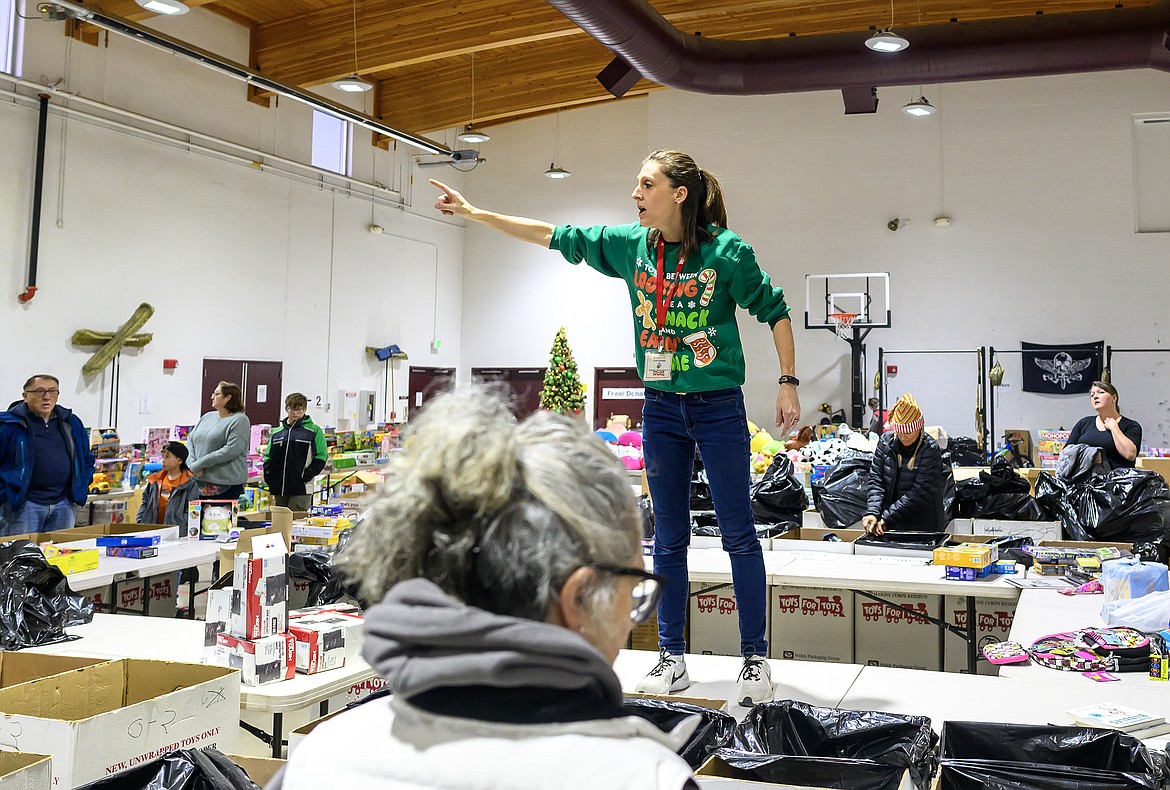 On Saturday morning about 80 volunteers, including all the Flathead Valley’s 4H groups and several Boy Scouts, turned out to unload trailers full of brand new, unwrapped toys for the children, which were stored at the National Guard Armory in Kalispell.