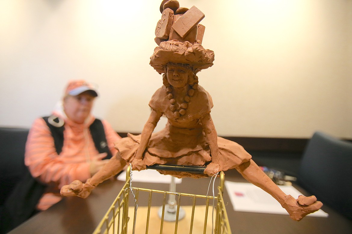 Nye, who was a Red Hot Mama from 2004 to the final parade performance in summer 2022, recently approached local sculptor Cheryl Metcalf to see if this project was possible. Within a week, the artist created a small-scale clay model of a famous moment in Red Hot Mama history — the performance group's first international appearance during London's 2004 New Year's Day Parade. The photo captured the Mamas with their signature shopping carts and colorful costumes, groceries piled high on their frilly, wide-brimmed hats as they leaped into the air in joyful jump splits.