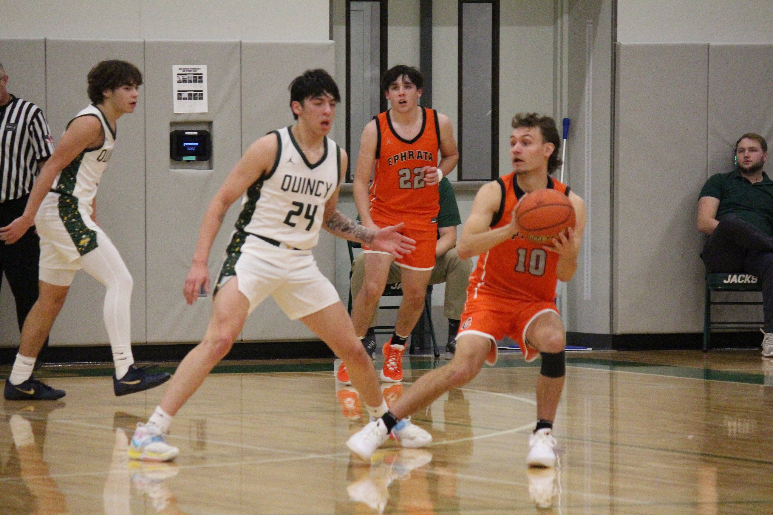 QUINCY — Good defense and a productive second quarter helped the Quincy Jackrabbits boys basketball team defeat the Ephrata Tigers 62-47 in a non-league game Thursday night in Quincy.
