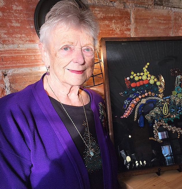 Sherry Hansen creates artworks by recycling pieces of mostly vintage jewelry. “But then I’m vintage,” she said with a chuckle.