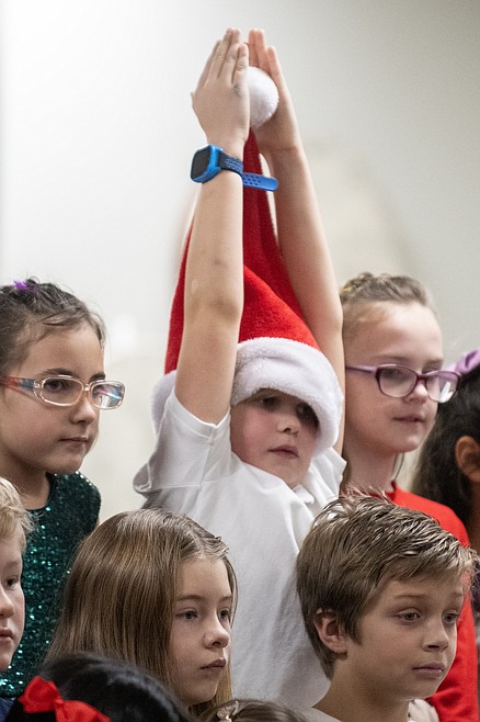 Ruder Elementary second grader Cameron Rice stands up his Santa hat for the holiday concert on Wednesday, Dec. 20. (Avery Howe photo)