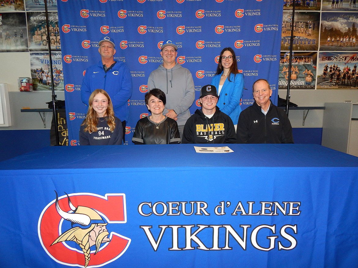 Courtesy photo Post Falls High senior Kinlee McLean recently signed a letter of intent to run track at Boise State. Seated from left are Caroline McLean, Kinlee McLean and Nick McLean; and standing from left, Craig Christensen, Post Falls High athletic director; Tom Moores; Cobe Cameron; Dylan Wolfe; Asher McLean; Wade Quesnell, Post Falls High head track and field coach; Jessie Ward, Post Falls High assistant track and field and cross country coach); Skilar McLean; Harper Moores; and Dennis Amende, Post Falls High assistant track and field coach.