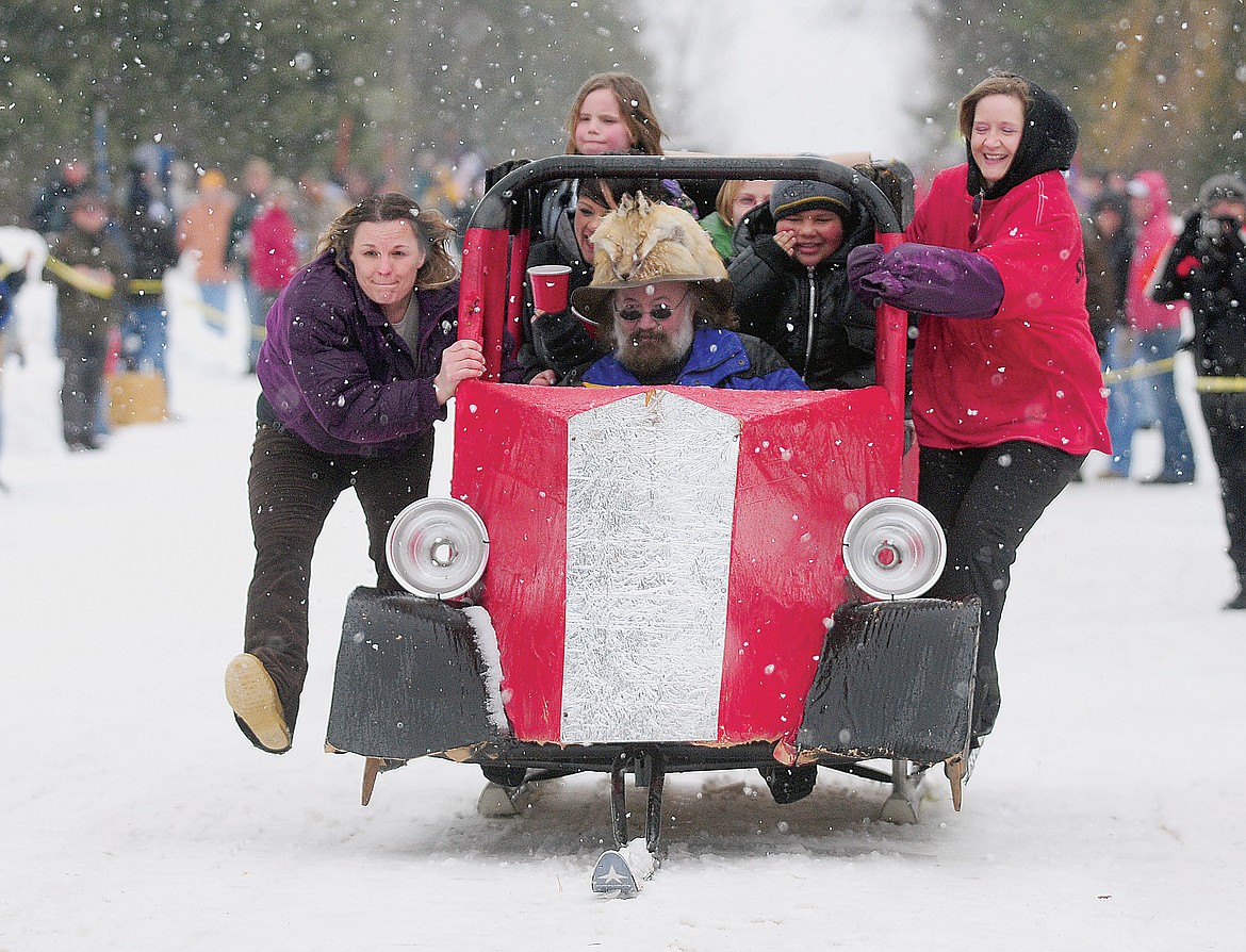 The bar stool races draw big crowds every year as race participants glide down Sugar Hill on everything from the traditional bar stool with skis attached to elaborate sleds.