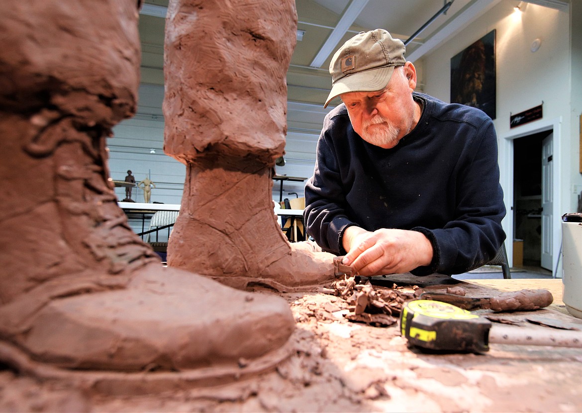 Lee is close to wrapping up his role in bringing the “U.S. Army Soldier” to life. Friday, he was in his Hayden home studio shaving small slices off the boots, detailed to the shoelaces.