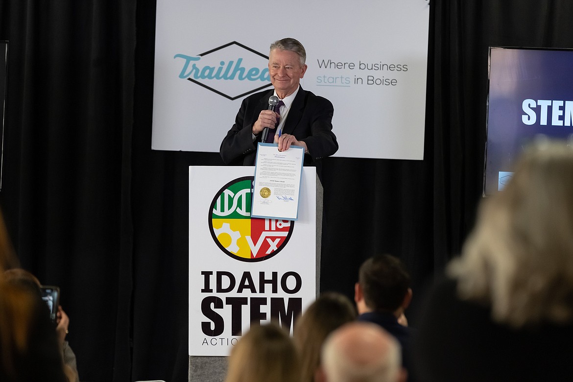 The Idaho STEM Action Center in Boise hosted a kickoff event Wednesday at Trailhead, a Boise co-working space for entrepreneurs and business professionals, where Little read a STEM Matters Month proclamation.