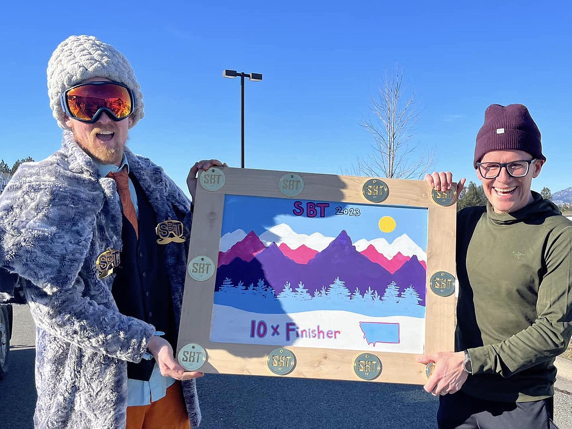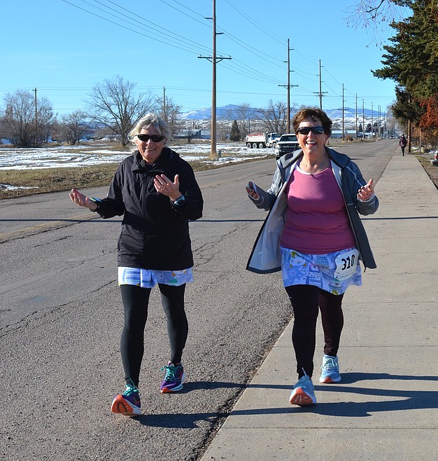 The sun was shining and snow had largely vanished from the course, which took participants up Polson Hill on the bike path to North Reservoir Rd., across to Back Road, downhill to 7th Ave., east to the bike path and back uphill to the Aquatic Center.
