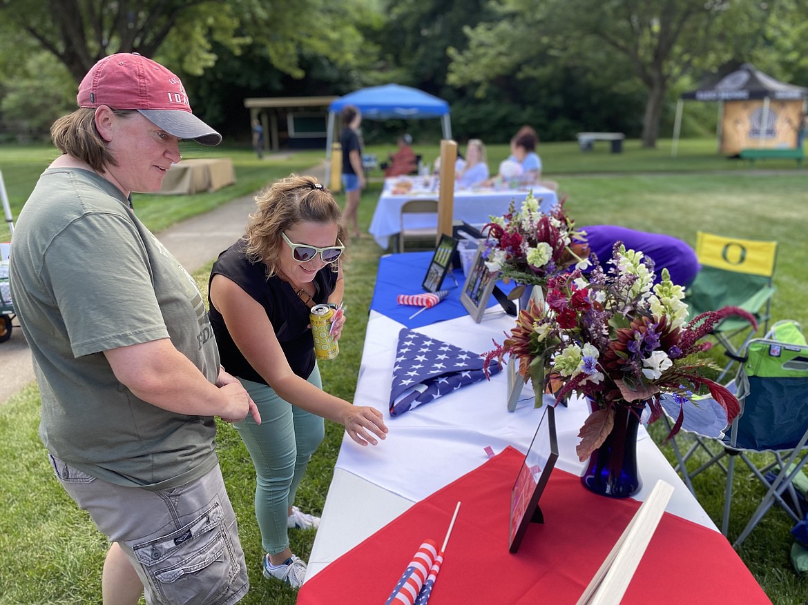 Mary Harding and Eve Heart could be found sitting in the shade by a sign that said “Let’s Talk.” The two are mental health professionals who made themselves available to help guide folks feeling overwhelmed.