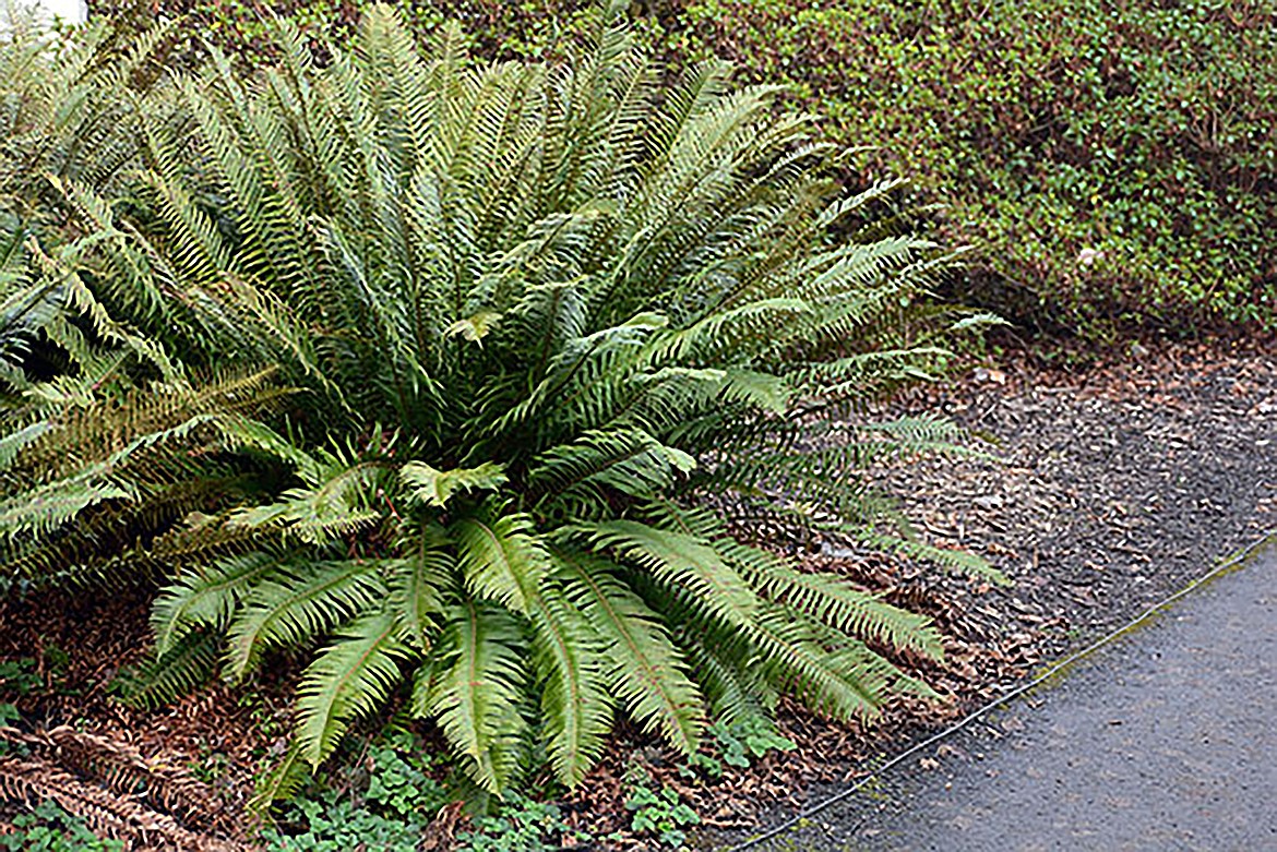 Sword Ferns add a lush texture and rich color to even the darkest corner of a garden year-round. They work well in shady beds and borders and as a ground cover in a woodland garden. Easy to grow, and once established, Sword Ferns require little maintenance. The rhizome can be divided in the spring to start new plants.