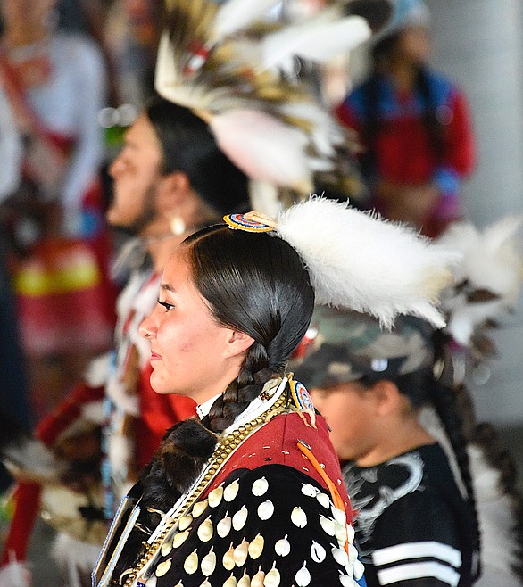 Kootenai War Chief Mike Kenmille led the Veteran Warrior Society flag bearers as the Ksanka Standing Arrow Powwow opened with the 7 p.m. grand entry on July 14.