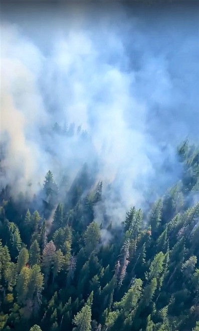 Kary Maddox, Forest Service spokesperson, said a wildfire about 3 miles up Beauty Creek Road off the northeast tip of Lake Coeur d’Alene continued to burn.