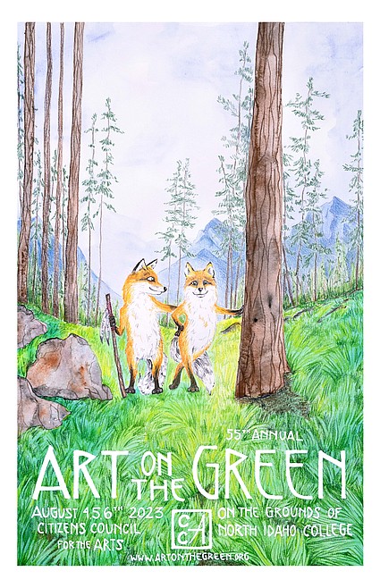 The winner of this year's Art on the Green Poster Contest is Brittany Groves, who works as a respiratory therapist at Sacred Heart Medical Center in Spokane. Her winning entry is a watercolor and ink piece with two friendly foxes out for a hike in the woods, stopping to take in the scenery.