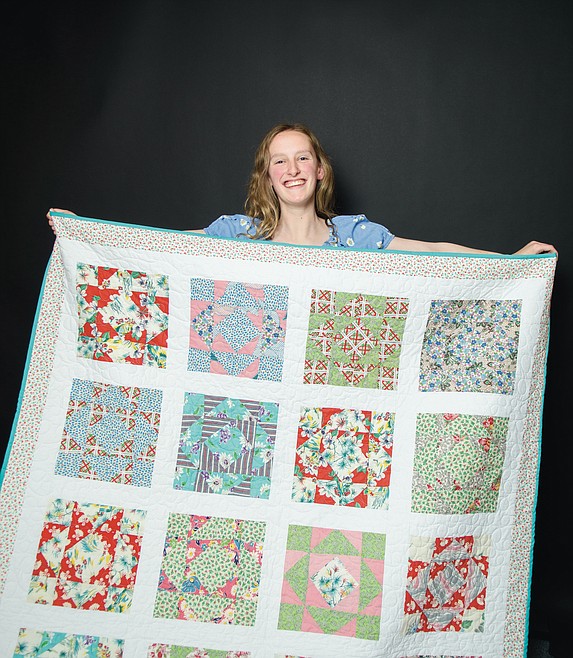 Ypma said she sewed the quilt as part of a greater senior project for her English class. She started in January on the quilt and just recently finished it. While most was done on a machine — a Singer Featherweight — she hand sewed the boundary.