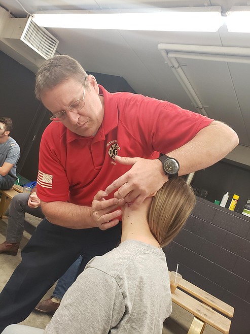 During the assembly following the DUI demonstration, Northern Lakes EMS Division Chief Shane Anderson sprayed into the air an entire nasal dose of Naloxone, a medicine that reverses an opioid overdose.