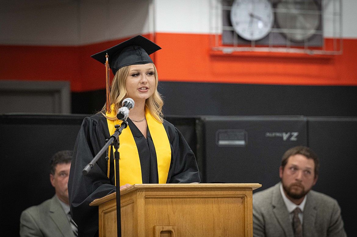 Cheers from the audience welcomed the students as they marched into the room to take their seats near the stage. Student Faith McGonagle led the Pledge of Allegiance with school Superintendent Thom Chisholm introducing the speakers. It was Chisholm's last commencement address as he is retiring the end of June to start a new business near Bull Lake called 406 Cedars.