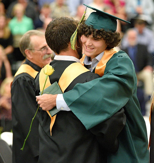 During the Whitefish High School 109th Annual Commencement Ceremony on Saturday, 127 students walked across the stage to accept their diplomas and graduate from high school. The stands were filled with family and friends of the graduating class who came to celebrate the graduates. During the ceremony, student body president Bowdrie Krack gave the address and senior class president Tevan Solomon spoke to give the Farewell to the Class. The ceremony was emceed by Sydney Buckmaster and Ryan Economy. Principal Kerry Drown gave the closing remarks and conferring of the degrees. Immediately following the graduation ceremony, all graduating seniors headed outside to do a ceremonial cap toss in celebration.