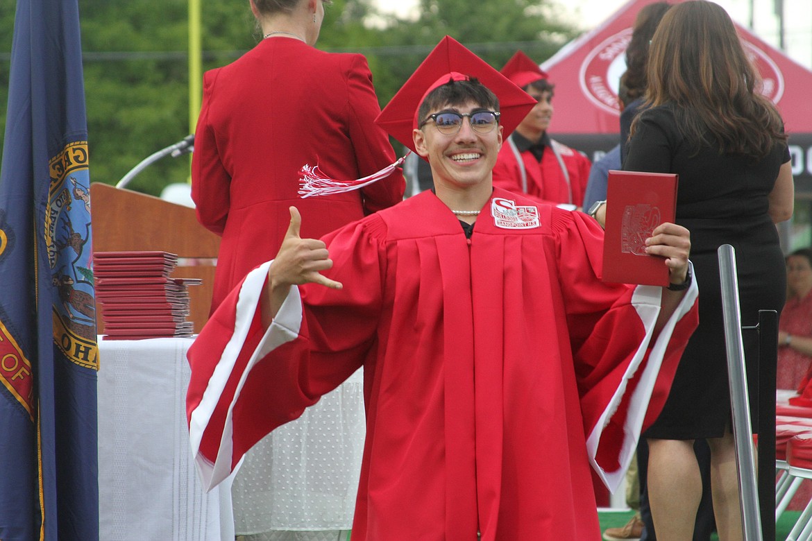 After all the speeches were finished, all 236 students walked across the stage, shook hands with administrators, and received their diplomas. The group then headed over to the victory bell to throw their graduation caps in the air as high as they could; friends and family then ran over to hug and congratulate their loved ones.
