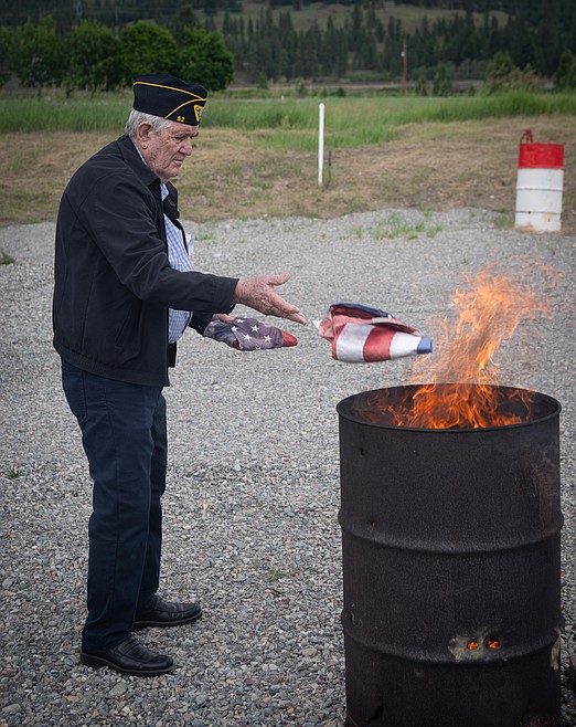 Post Commander Ken Matthiesen recited the long-standing ceremony, retiring flags that have served their useful lives in Sanders County. Throughout the year, the American Legion collects flags for the Flag Day retirement ceremony.