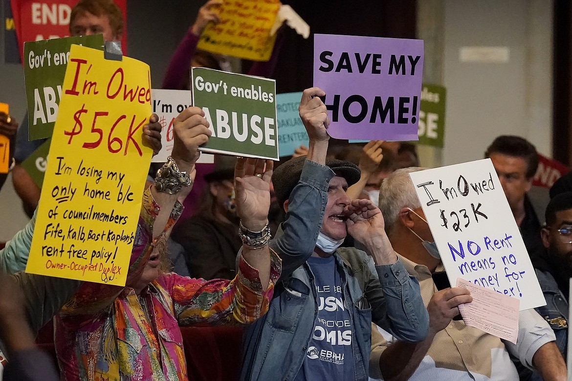 While it's more common to see tenants converging on city halls in California to demand greater protections, in Oakland and surrounding Alameda County small-property landlords staged protests earlier this year demanding an end to the moratoriums.