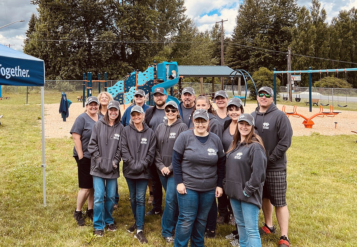 Last week, in accordance with the Lion’s Park Playground Committee, Mountain West Bank (MWB) held a work day at the park where it helped take care of a few loose ends.