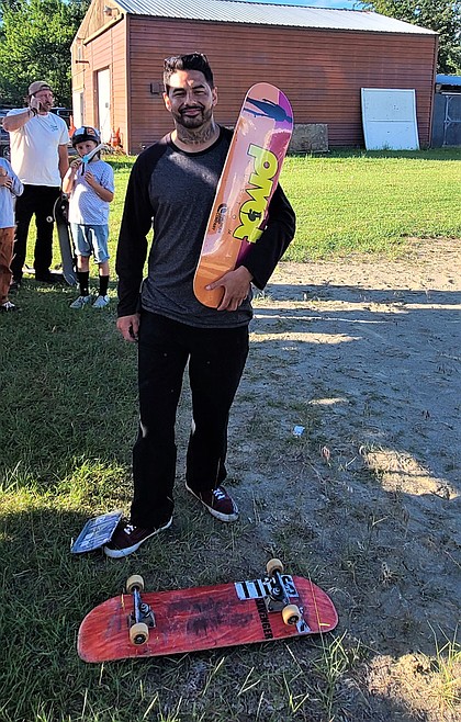 John Aguilar, was the winner of a skateboard deck, which was donated by American Ramp Company. John is a skate dad who got back into the sport a couple years ago with his son, officials said.