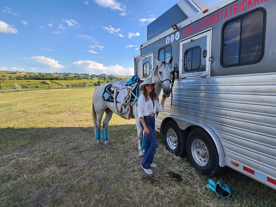 “Almost everyone (who’s a trick rider) in the United States or Canada, I’ve gotten advice from,” Da Costa said, listing Niki Flundra, Madison McDonald Thomas, Ginger Duke, Rae-Lynn Armstrong, Tad Griffith, Shelby Cummings, Shelby Pierson, and Cathy Warner.