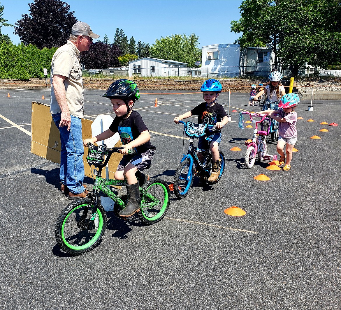 A bus driver showed how to peddle around cars. Cox taught how to safely leave a driveway, and J.D. White taught kids to look both ways at a stop sign or to cross a street.