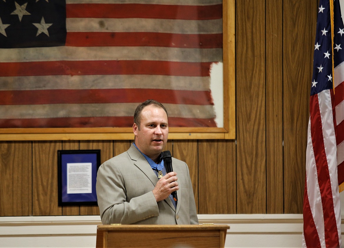 In a 35-minute talk, he recounted his actions in Ghazni Province, Afghanistan, on Aug. 28, 2013.