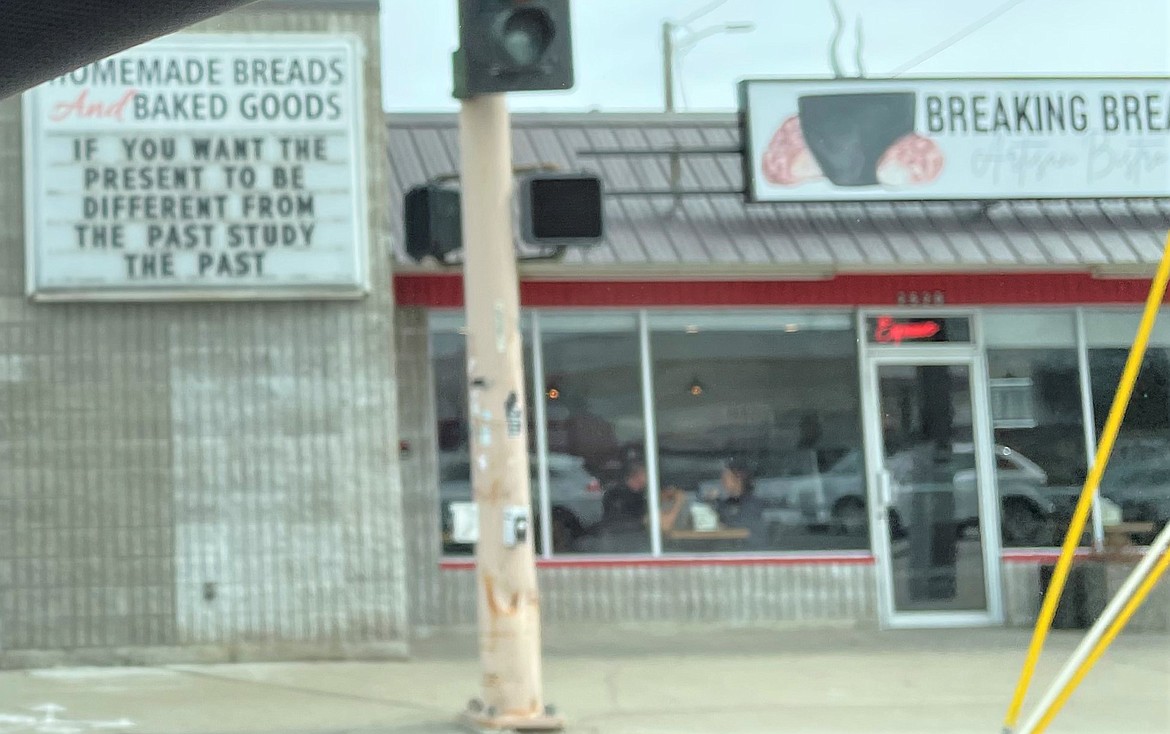 The reader board outside Breaking Bread, which used to be home of Davis Donuts, has long delivered quips meant to give people pause to reflect on their meaning and perhaps provoke likely discussions and even laughter.