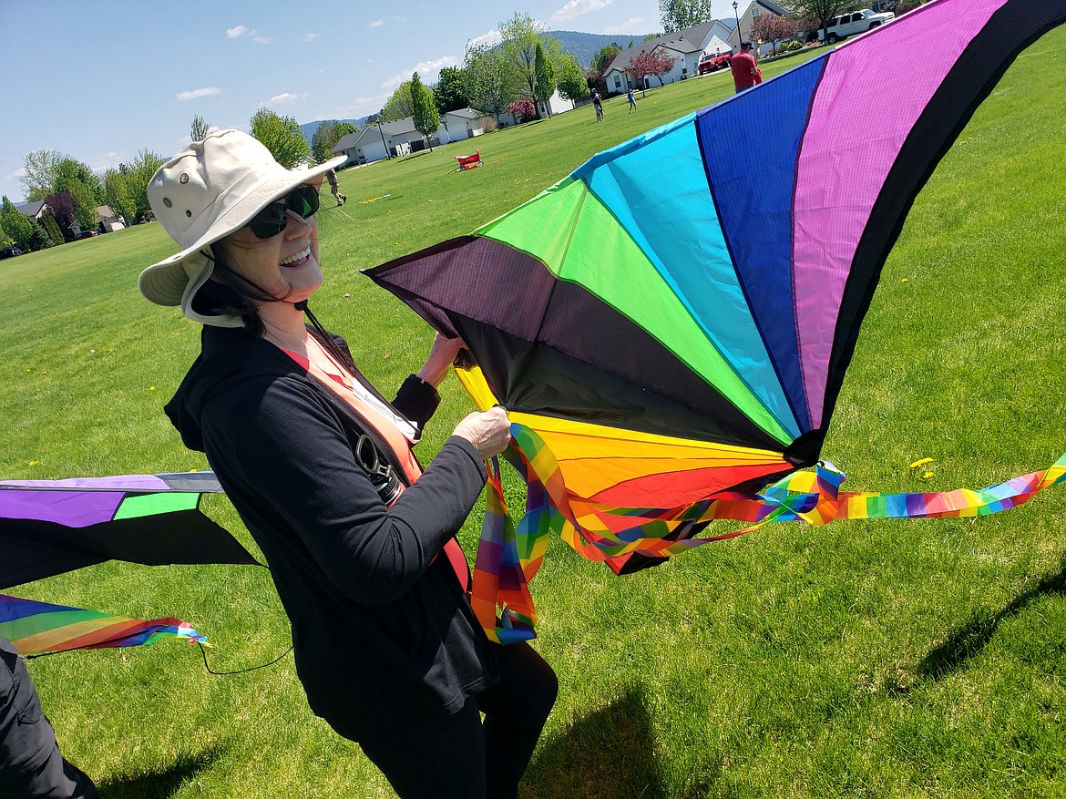 HAYDEN — Barb Neal let the breeze grab her rainbow-colored kite Saturday at Broadmoore Park in Hayden.