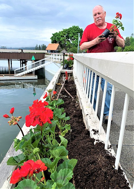 Rick Powers, director of food and beverage with The Coeur d'Alene Resort, led his team in planting geraniums along the seawall near the Hagadone headquarters. He has taken part in the program dating back to 1985 and watched it grow.