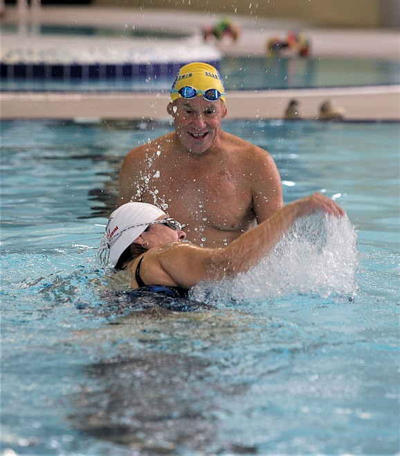 Rod Wharton and Russ Helgeson, veteran swimmers, are instructors.