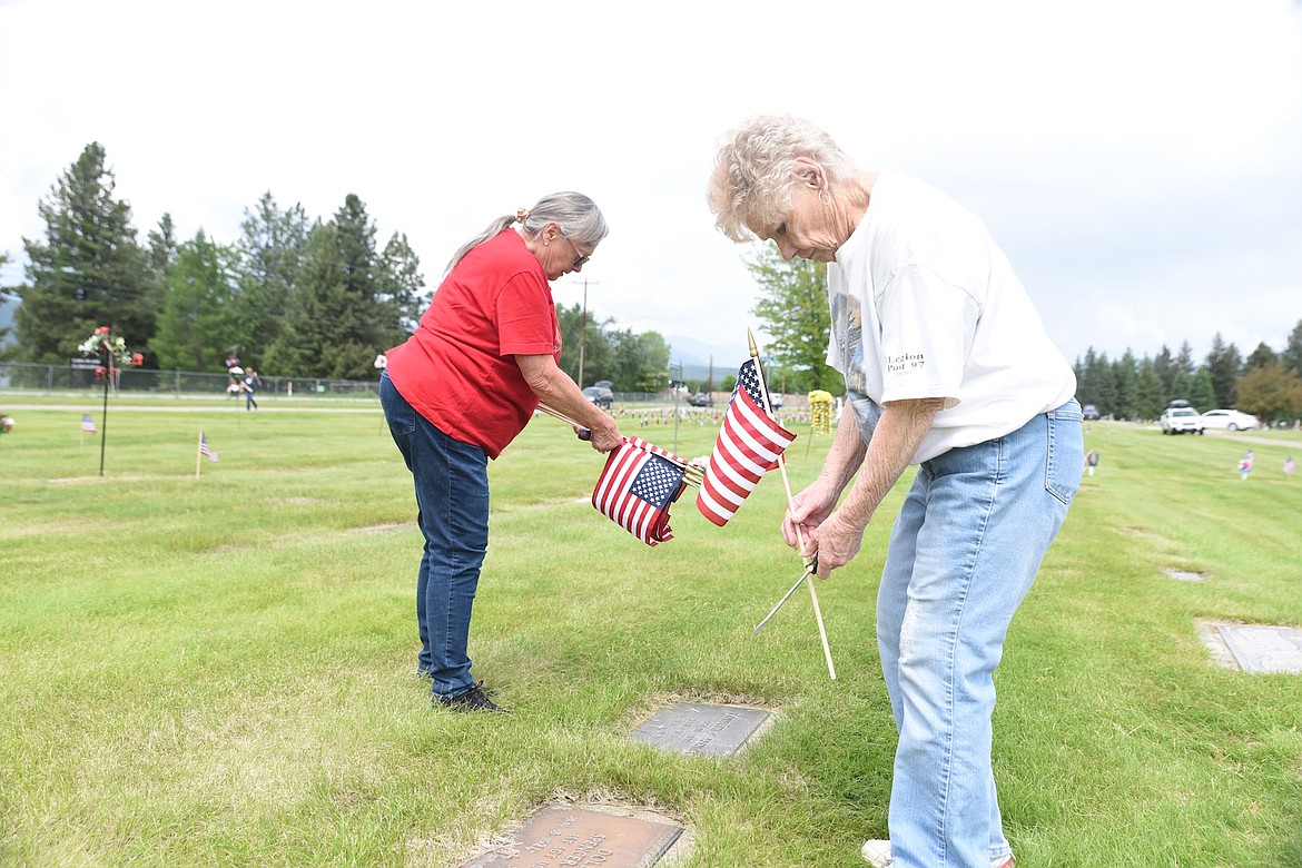 Saturday afternoon, members of the auxiliary and Austin Reedy Post 97 placed U.S. flags and flowers on veterans' graves.