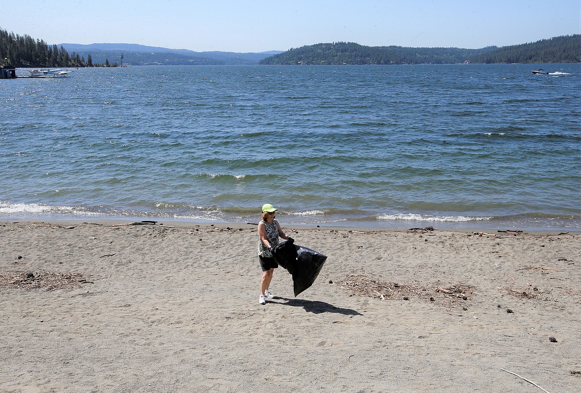 Judy Wiley of Rathdrum picks up litter at Coeur d'Alene City Beach on Tuesday. The Hagadone Marine Group and Lake Coeur d'Alene Cruises organized the annual cleanup that also included the shoreline from Tubbs Hill to Independence Point. Wiley one of about 15 volunteers who came out on a sunny morning for the event.