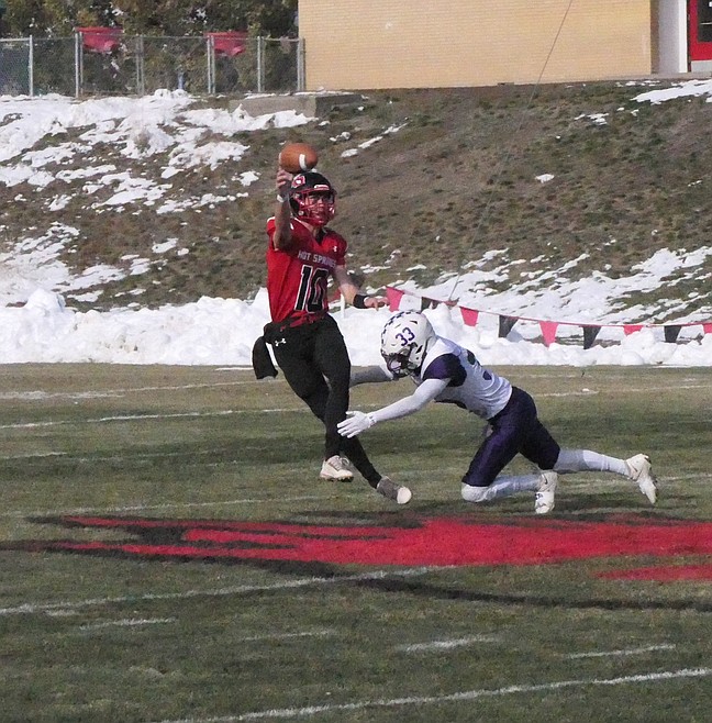 With 5:38 remaining in the third quarter, McAllister hooked up with Waterbury on a five-yard scoring strike. The PAT kick was blocked but Hot Springs led 26-6.