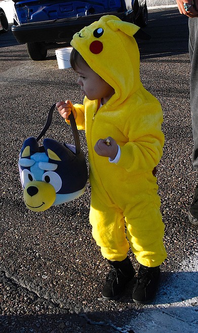 “Monster Mash” by Bobby “Boris” Pickett and the Crypt Kickers rumbled on the sound system, and Beetlejuice was cooking hotdogs on the grill. It was Halloween Trunk or Treat at the Mission Valley Super Oval on North Reservoir Road on Sunday.