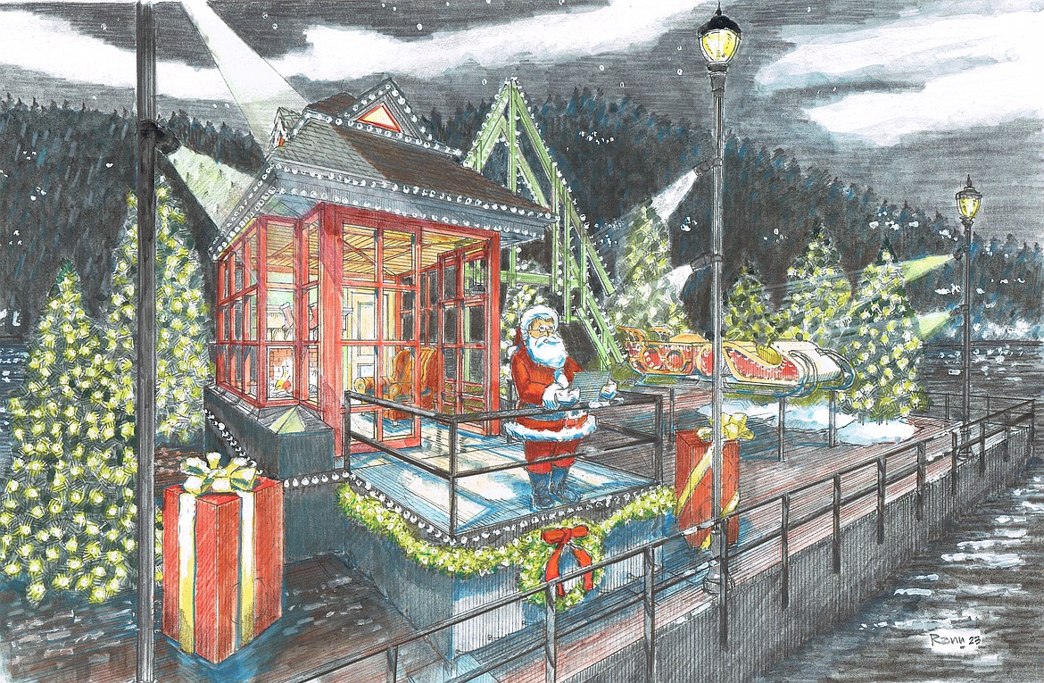 Santa will greet guests with his jolly laugh and call the name of each child aboard from his new waterfront toy workshop that has improved design elements, additional lighting and enhanced audio features.