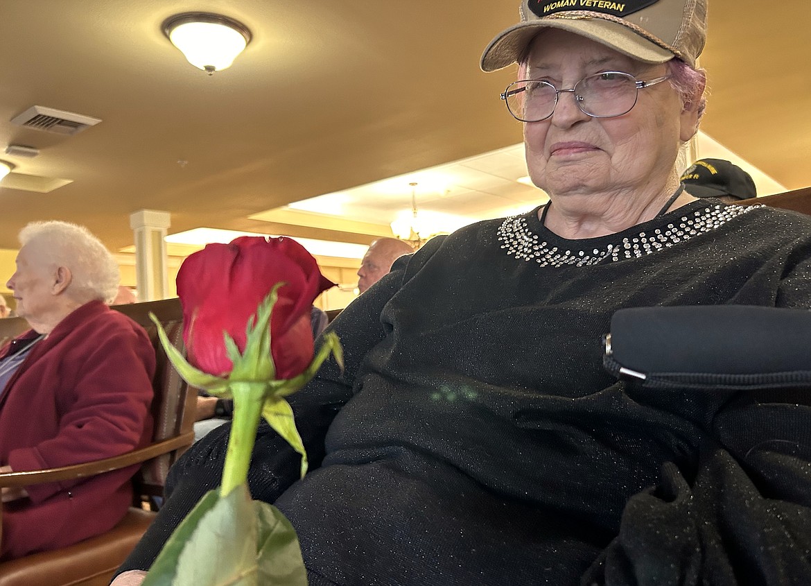 About 20 veterans at Brookdale, a local senior living community, were honored with roses, certificates and accolades. A flag ceremony, the Kellogg High School JROTC, and cake were part of the hourlong event attended by about 25 Brookdale residents.