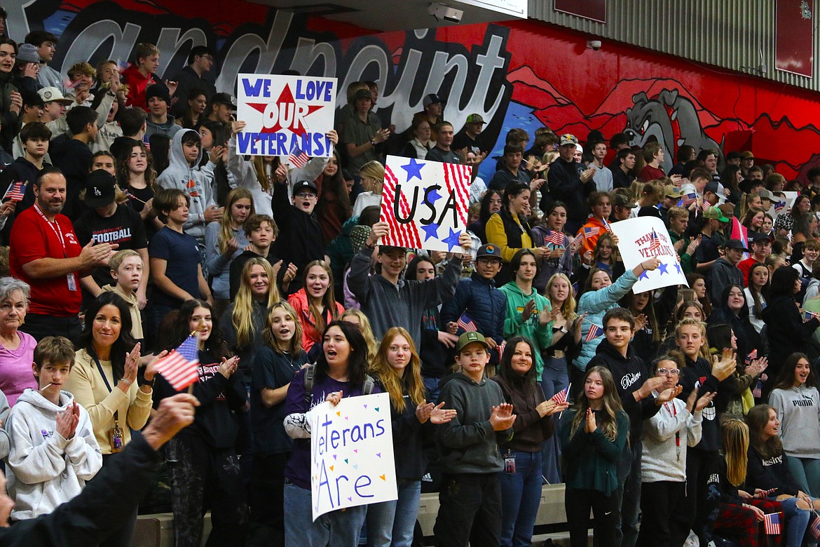 At Sandpoint High School, hundreds of students filed into the gym with handmade posters to honor veterans. The school choir performed the national anthem prior to a speech from retired Marine Sgt. Cody Alford, who motivated students to rise above their fears of how they are perceived so that they can work toward bigger dreams.