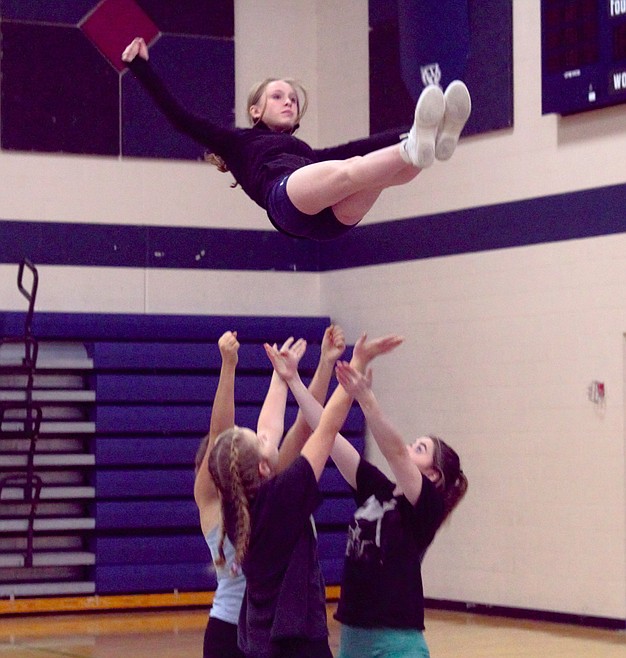 The Bonners Ferry cheer team is preparing for competition season and is now co-ed with two boys coming out to cheer.