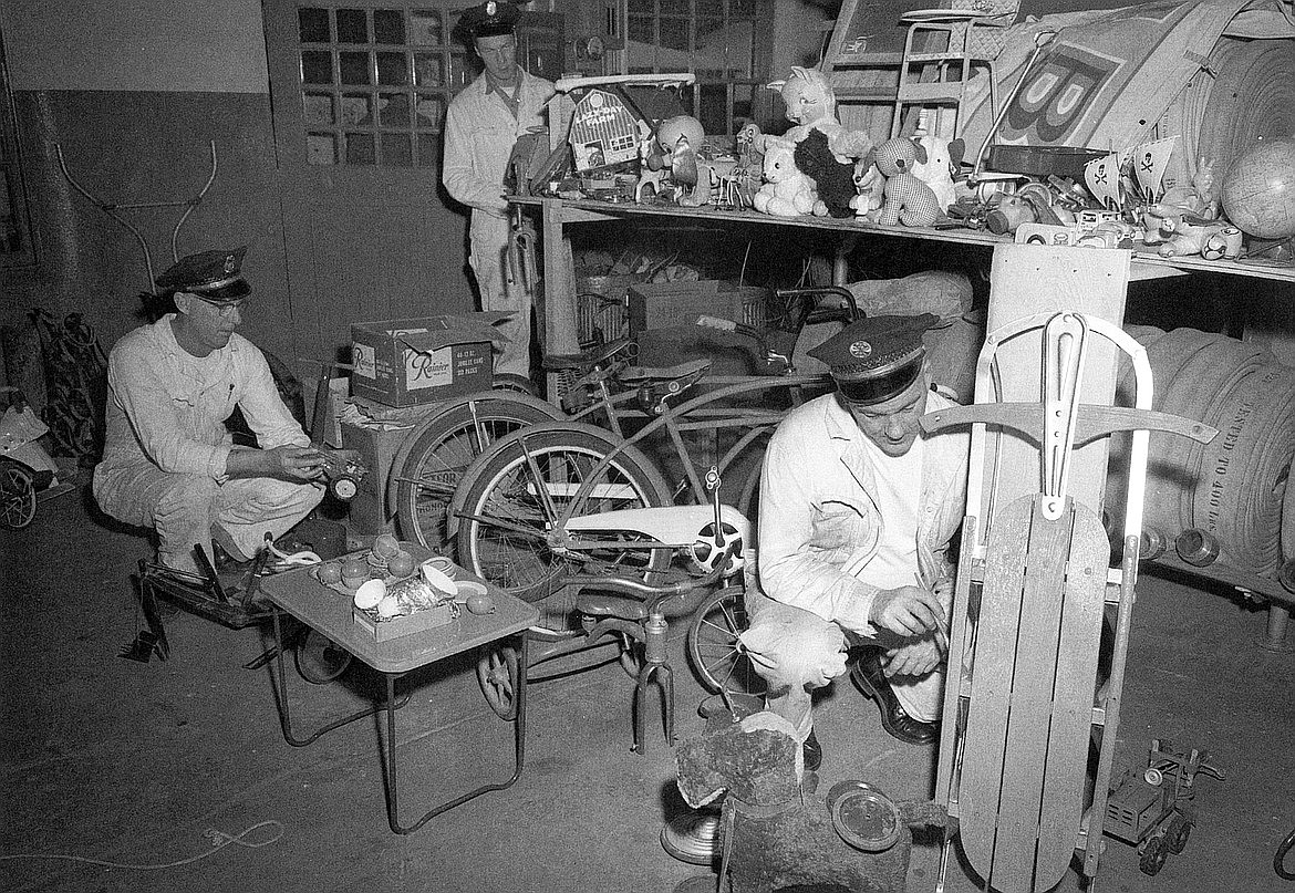 Carefully, and with great love, Lions members and their merry crew of helpers scraped off chipped paint, fixed broken wheels and sewed loose limbs on stuffed soon-to-best friends. The dirt was washed off, bent frames fixed and everything made into something straight from Santa’s workshop. All that was “old,” was made new again — and when Christmas morning dawned, the toys had new homes and a host of local youngsters had a merry Christmas.