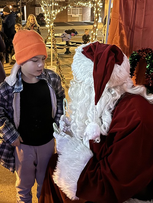 Santa Claus listens as a young fan shares what they would like for Christmas as the Jolly Old Elf came to Sandpoint on Friday for the town's annual tree lighting ceremony.
